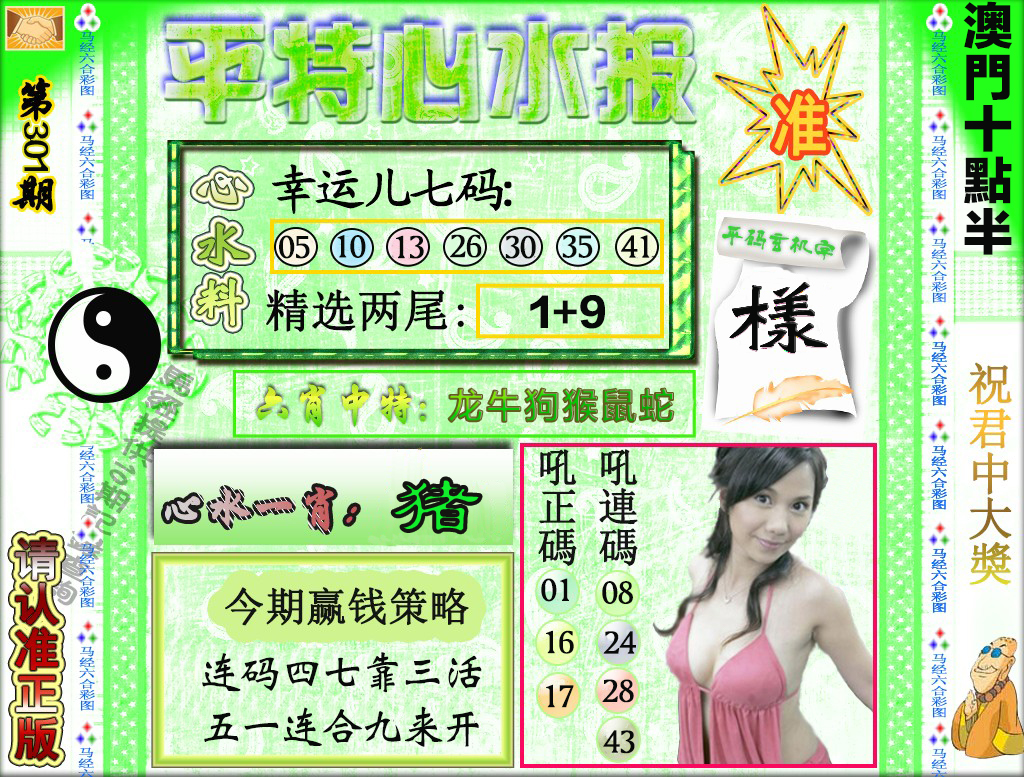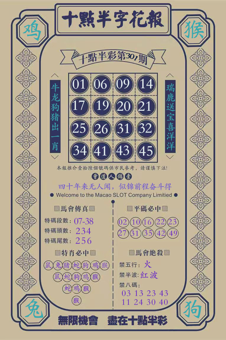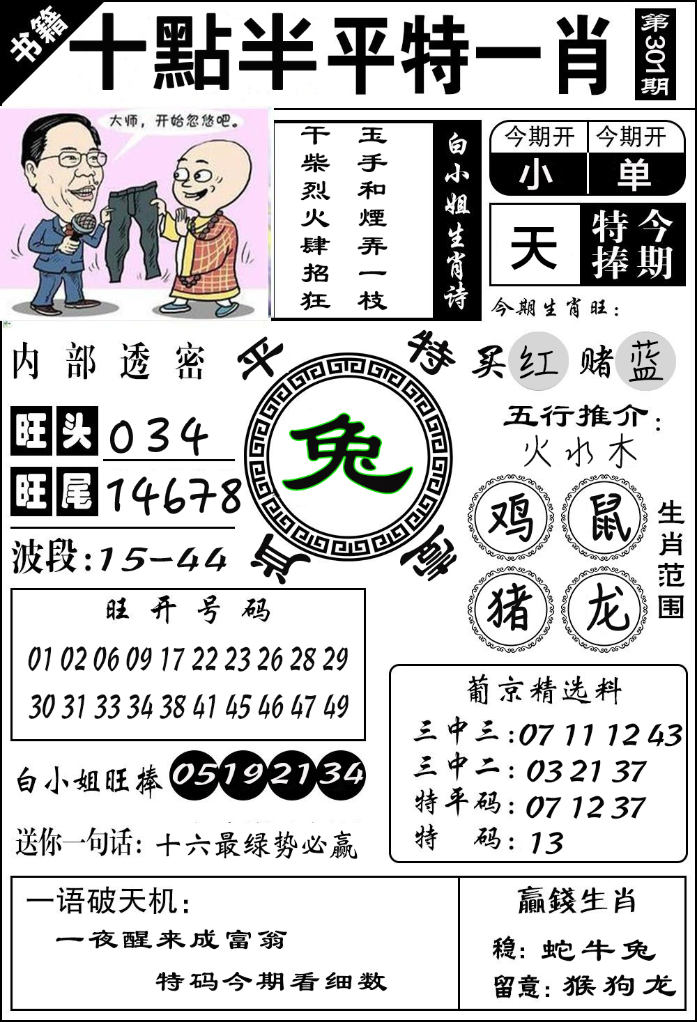 | 必中五肖:鸡兔牛猴蛇 | |