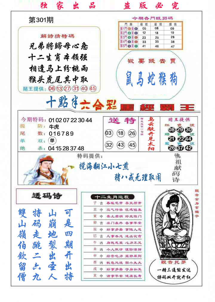 | 必中五肖:鸡兔牛猴蛇 | |